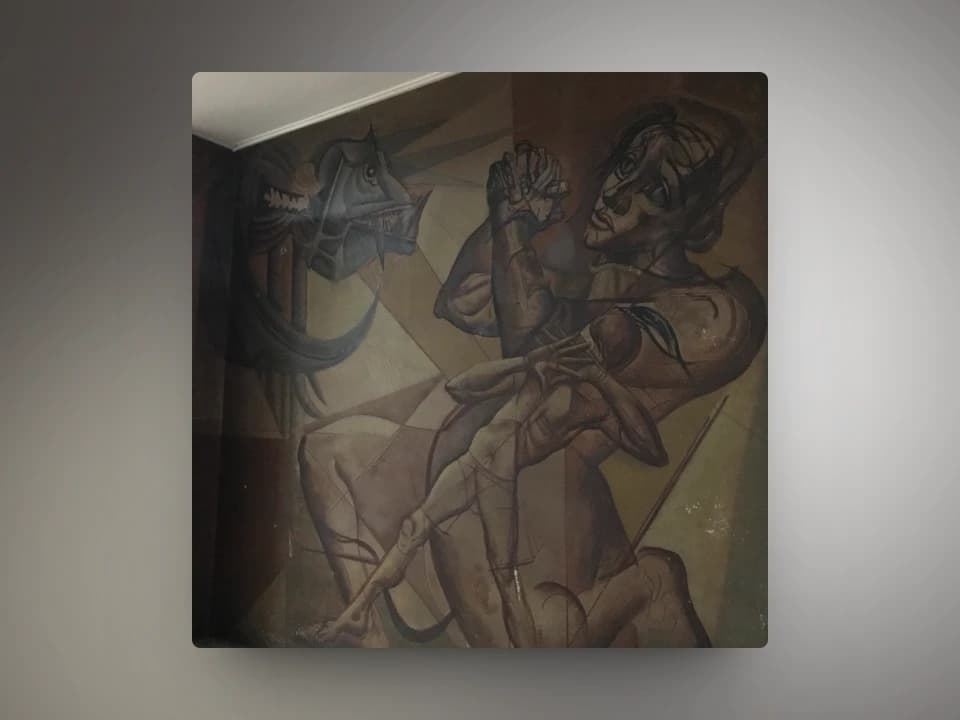La obra de Lino Enea Spilimbergo, ubicada en el hall de la entrada del edificio de Viamonte 867, fue su último mural sin título pintado en 1955. El mismo muestra la imagen de una madre y su hijo amenazados por un extraño animal; al parecer hace referencia a los desafíos que enfrentan los seres humanos ante la adversidad, un tema recurrente en el pintor. Casi finalizando la obra, el propietario del edificio y el artista tuvieron ciertas diferencias y al terminarla, Spilmbergo, tal como lo había prometido, no firmó el mural. Además de su peculiar historia, su importancia radica en que la obra resume muchos de los conceptos e ideas que Spilimbergo había recolectado a lo largo de su carrera tanto e la técnica muralista como en su estética.
